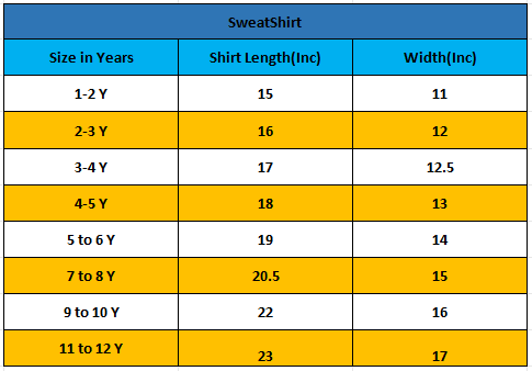 What sizes are available for kids' clothing?