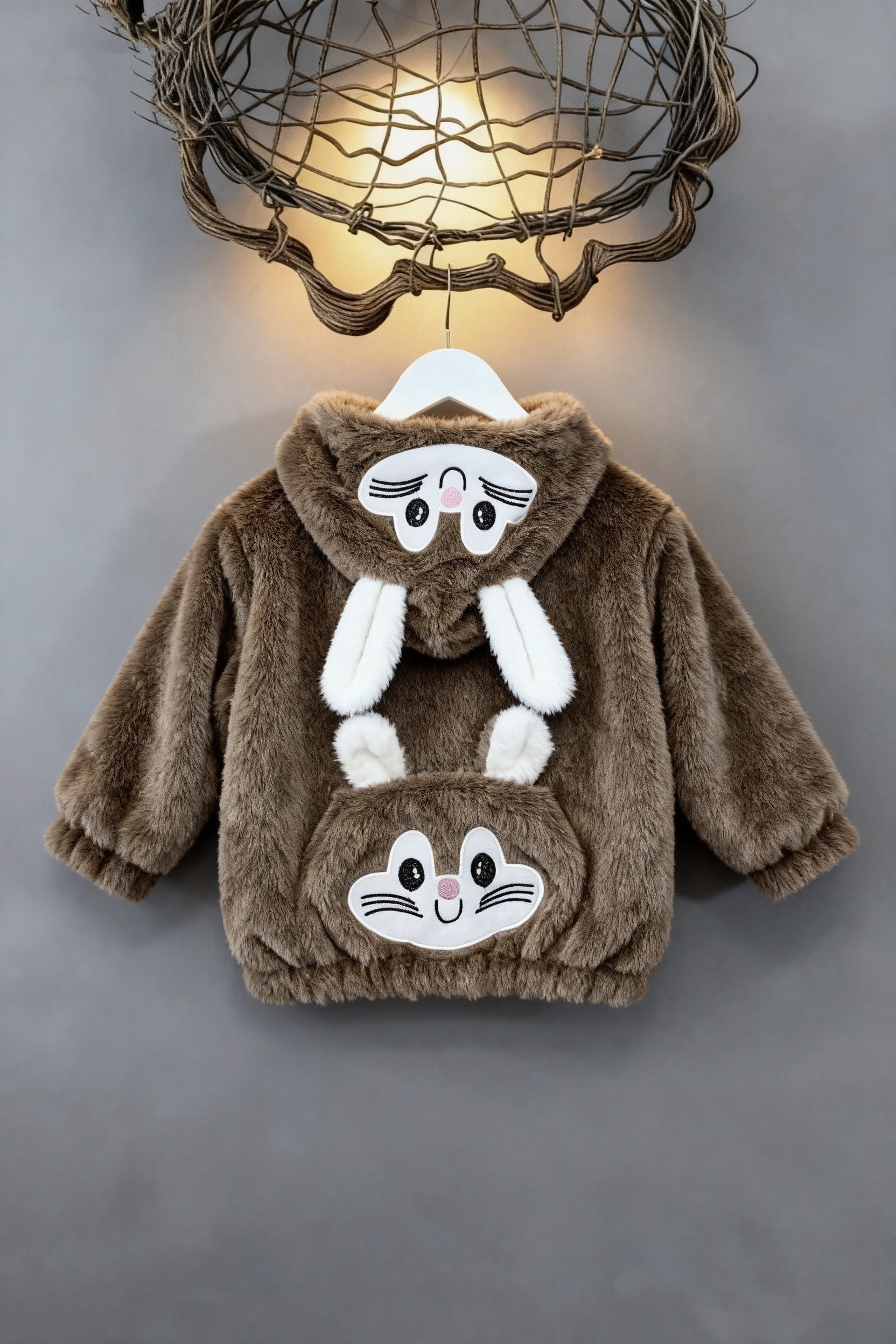 Rabbit Plush Hoodie Jacket – Brown